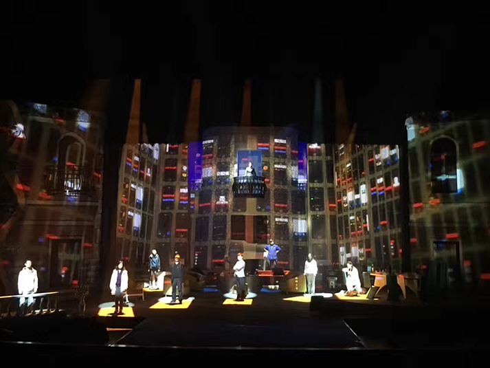 該劇有對人物靈魂的拷問、對人性的追問,也有對生命意義的表達(dá),在雄渾凝重的燈光設(shè)計風(fēng)格上,著重呈現(xiàn)劇目的人物塑造。該劇中,LED切割燈GL-6和LED圖案燈GL-5,承擔(dān)了劇目面光和舞臺特效的作用,憑借高亮度、均勻的光斑、全面的功能和穩(wěn)定的運轉(zhuǎn),成功為該劇護(hù)航。尤其是LED燈具在調(diào)光、頻閃上更加細(xì)膩線性的表現(xiàn),有助于劇情傳達(dá)更加微妙細(xì)致的情感。另外,天幕燈C5的八色混色,讓色域?qū)拸V、換色細(xì)膩,投光式渲染法使得效果均勻自然、一致性高,渲染劇場氣氛。