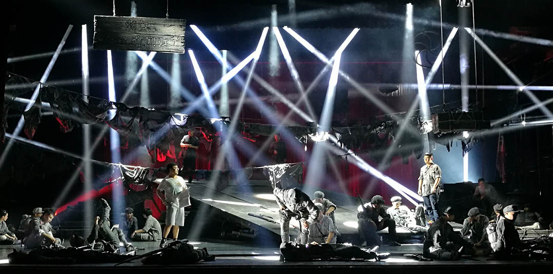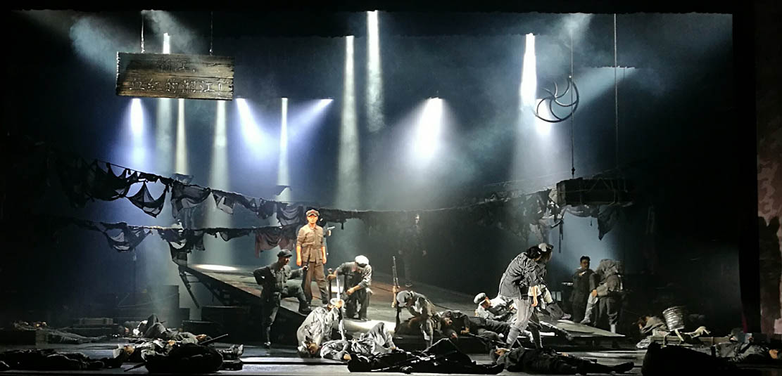 為紀念紅軍長征勝利80周年,軍委政治工作部話劇團聯(lián)手中共成都市委宣傳部創(chuàng)作排演的敘述體話劇《從湘江到遵義》9月28日在京成功首演。該劇由著名導演宮曉東執(zhí)導,特邀國內(nèi)著名燈光設計邢辛擔任燈光設計、著名編導孫涓涓任形體設計。浩洋電子革命性劇院式電腦燈V1000P、內(nèi)置兩套可任意切換光學系統(tǒng)的三合一全能王電腦燈G12 HYBRID和頂級高顯色性電腦搖頭切割燈V3000P等一大批高品質(zhì)特寶麗燈光傾情獻力,為該劇成功首演保駕護航。
