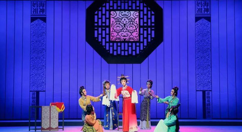 莆仙戲《海神媽祖》主要描述的是林默娘痛心海難無情而無私救苦救難,深得上天感動(dòng),最終被授予遇災(zāi)警示及造福于民的法力,從平凡漁家女子到海上女神的傳奇。劇目以敘事詩般的藝術(shù)手法刻畫出媽祖娘娘扶危濟(jì)困的偉大形象,靈活展示了媽祖娘娘德、行善、大愛”的精神。隨著海上貿(mào)易和文化交流的延伸,媽祖信俗從沿海各地傳播到東南亞乃至全世界,媽祖也因此成為了“海上絲綢之路保護(hù)神”。