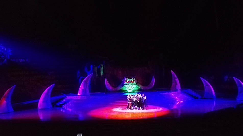 《薩瑪》以梵凈山下的侗族村寨、山水、竹海為背景,講述了發(fā)生在遠(yuǎn)古侗族山寨里女主角“薩瑪”身上的凄美愛情故事??可矫嫠?、高度潮濕的演出環(huán)境,對燈光設(shè)備的質(zhì)量提出了極高的要求。該項目共使用浩洋電子旗下特寶麗(Terbly)品牌大功率LED切割燈GL-6、LED搖頭染色燈GLW190Z、搖頭圖案燈V1501S、追光燈FS800M、條形染色燈PB8D、及沉水式LED變色燈等合計近600臺。