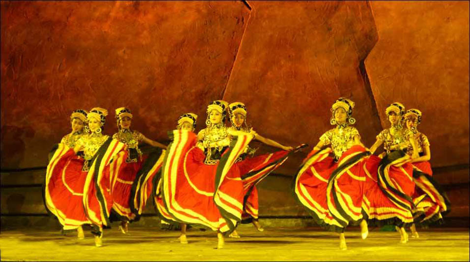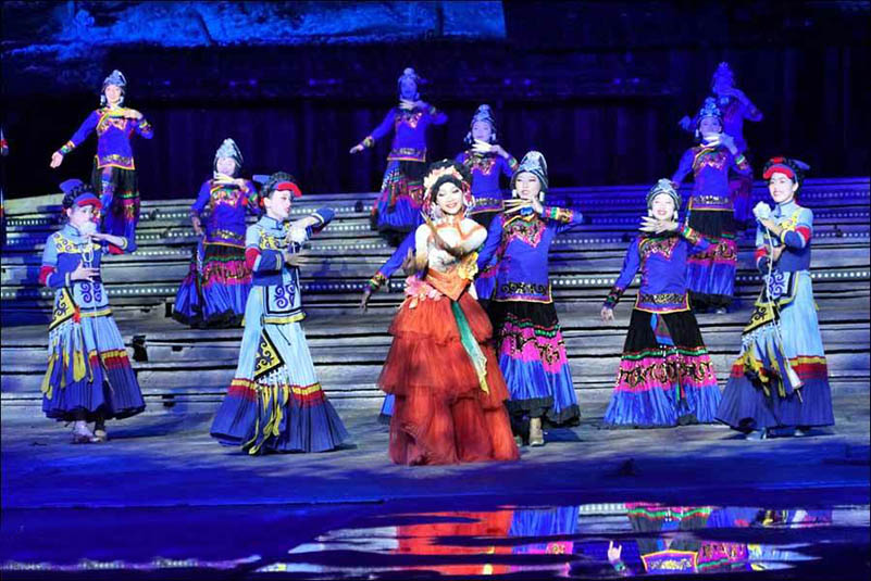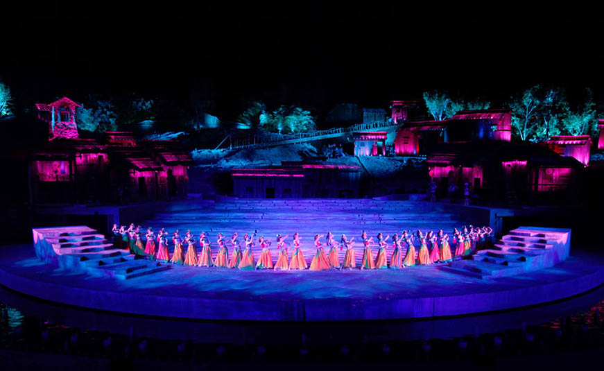 《阿惹妞》是目前中國第一臺火秀實(shí)景劇,該劇全長60分鐘,共分為5個篇章,從民族源起的腳步展開,講述了阿惹妞情與愛的生命畫卷。該劇以“火”作為彝族的生命圖騰貫穿始終,呈現(xiàn)了“火”作為一個民族情感的載體而展開的生命傳奇,具有濃厚的彝族文化風(fēng)情。