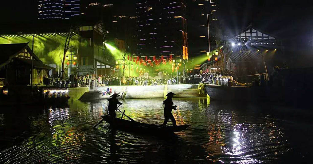 浩洋電子成功打造湖南首臺城市風情實景秀《夢回穿紫河》燈光工程,艷驚八方