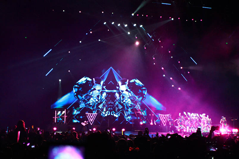 當(dāng)晚,在特別嘉賓DJ雙人組The Dolls長(zhǎng)達(dá)近半小時(shí)的熱場(chǎng)后,Katy Perry身著一襲紫色熒光虎面緊身超短于晚上21時(shí)閃亮登場(chǎng)。水果姐在近90分鐘的時(shí)間里,以百變?cè)煨秃蛣鸥锜嵛瑁琱igh翻全場(chǎng),浩洋電子燈具交相輝映,完美融入音樂旋律中,讓臺(tái)下粉絲徹底沸騰!