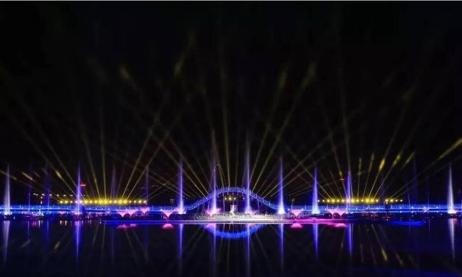 閱海灣中央商務(wù)區(qū)也利用湖內(nèi)的廊橋建造大型水上演藝中心和“夜游銀川”的燈光秀融為一體。游客可坐著船或在棧橋上,欣賞美輪美奐的演藝盛宴。