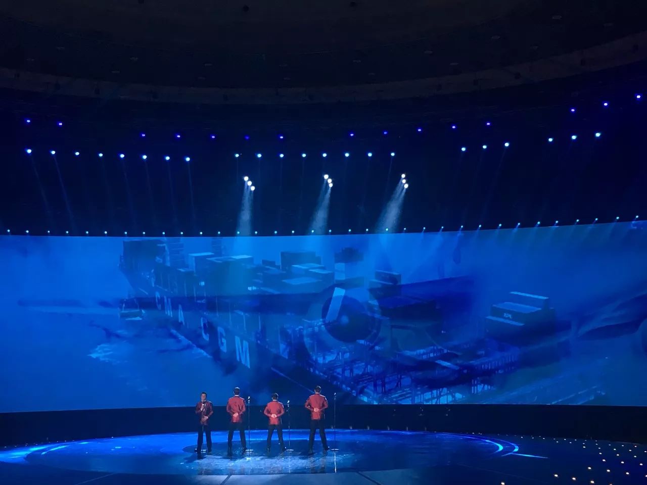 在晚會現(xiàn)場的5500平米圓形場地,處處充滿了代表團圓的元素。特別值得一提的是,圓形的主舞臺位于場地正中,與頂部天目上下相對,并以此為中心,將圓滿的氛圍蔓延至整個場地。