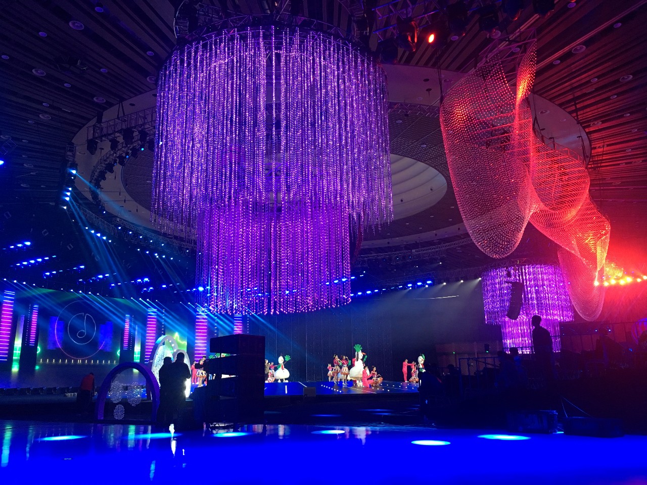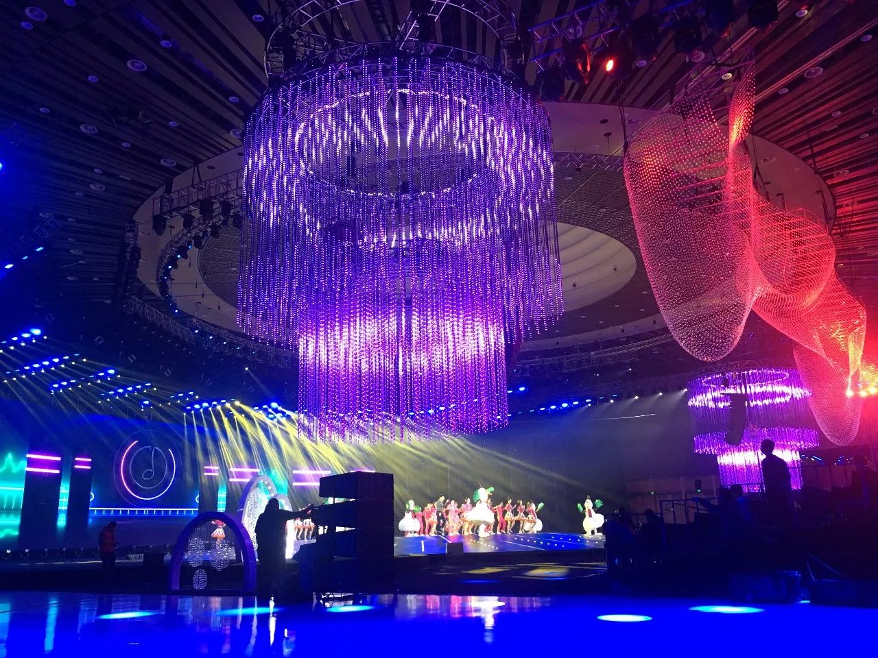 2018年,央視繼續(xù)不走尋常路,首次走出演播廳,舉辦地落戶了雁棲湖,并于2017年12月31日20:00在CCTV1、CCTV3、CCTV4三臺聯(lián)播。此次由北京東語華星文化藝術有限公司傾力打造的晚會,主題為《啟航2018》,云集了眾星加盟,在舞臺上詮釋“國”“家”“情”“美”。另外,晚會實現(xiàn)了娛樂與文化的融合,通過不同的表演形式將2017年的國家大事件在舞臺上表現(xiàn)出來,浩洋電子專業(yè)舞臺燈光產(chǎn)品光束燈V2000B、LED搖頭染色燈GLW7QZ、光束燈PT189B等也為晚會提供有力的燈光支持,為全國觀眾帶來一場漲知識又有視覺享受的新年晚會。
