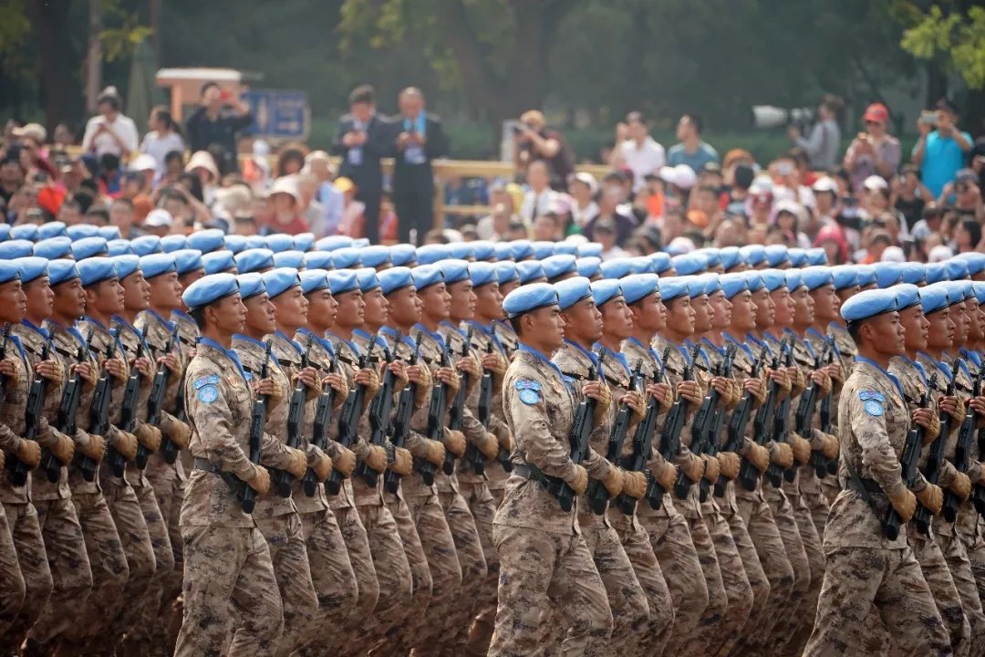 本次徒步方隊(duì)共15個,領(lǐng)導(dǎo)指揮方隊(duì)、院??蒲蟹疥?duì)、文職人員方隊(duì)和維和部隊(duì)方隊(duì)首次亮相,儀仗方隊(duì)也是歷史上規(guī)模最大的一次。其中,維和部隊(duì)方隊(duì)代表的是千千萬萬為了世界和平與安全,奉獻(xiàn)青春與熱血的中國軍人。此外,女兵方隊(duì)安排兩名女將軍擔(dān)任領(lǐng)隊(duì),以颯爽英姿亮相閱兵場,這也是歷次閱兵首次在徒步方隊(duì)安排女將軍受閱。
