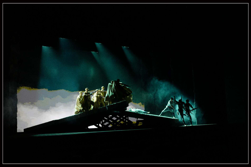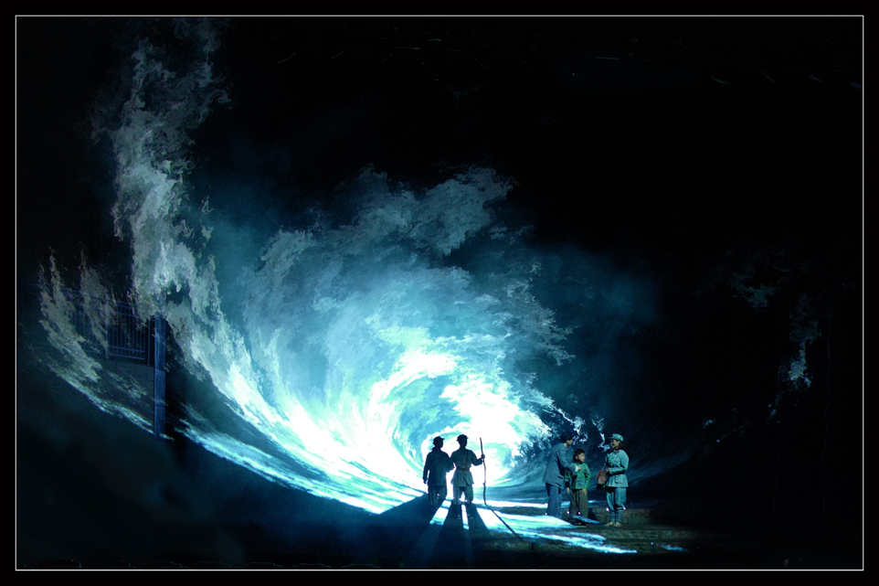 舞臺(tái)劇中 “交互式”的藝術(shù)表現(xiàn)形式,涵蓋了話劇、舞劇、舞臺(tái)美術(shù)、音樂、音響、多媒體、燈光等一系列在其中,讓劇目更具有生命力,更具有視覺感官?zèng)_擊,能夠?qū)v史重現(xiàn)在觀眾的眼前,呈現(xiàn)一個(gè)逼真的全維度感官場景。