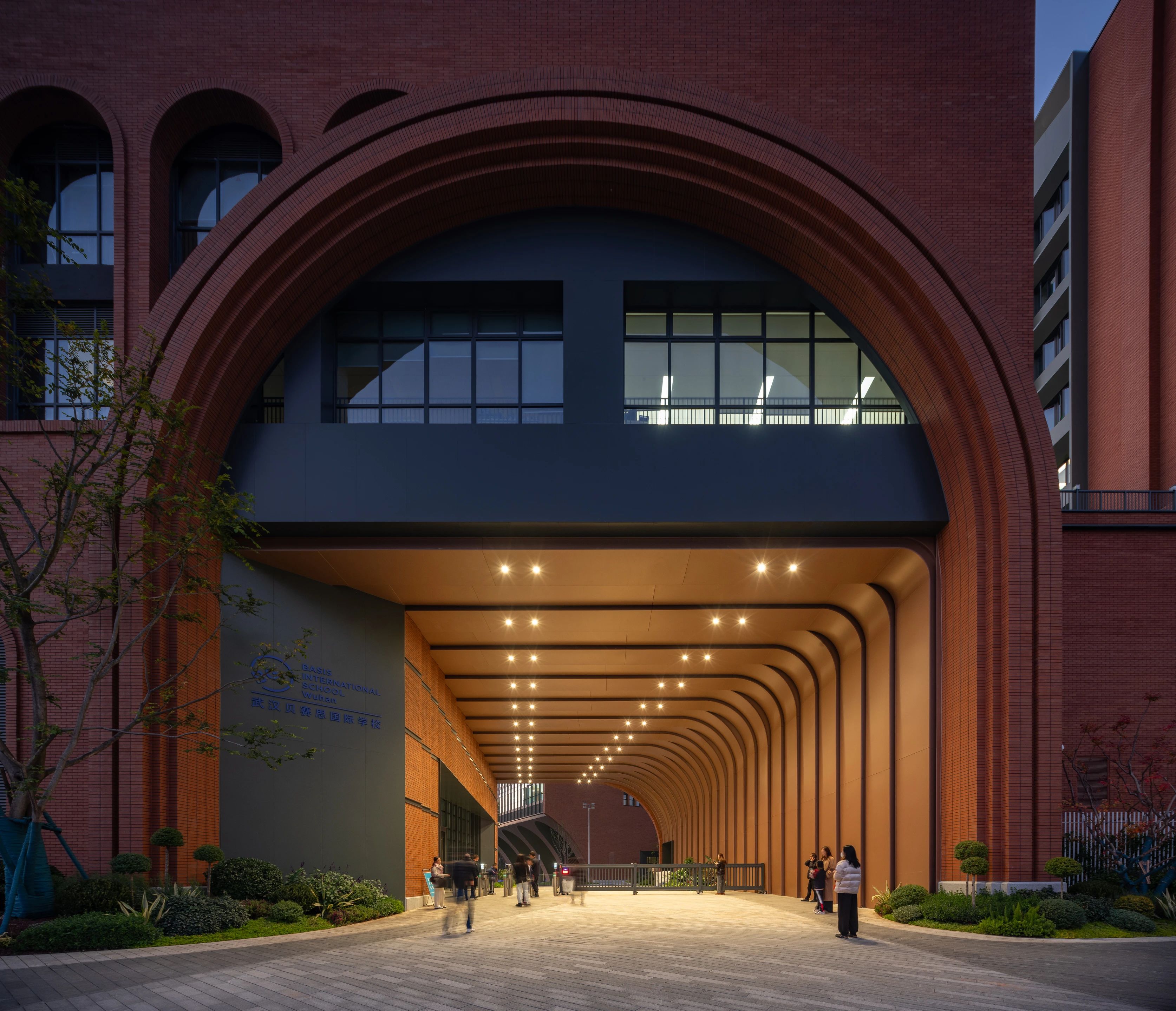 悠悠長江畔,融融東西學(xué)。在中國武漢市洪山區(qū),武漢貝賽思國際學(xué)校,一座充滿歷史感與現(xiàn)代美的建筑北臨長江而立。校園的主體建筑采用了現(xiàn)代的施工工藝與幾何化的簡練造型,在浩洋燈光的映襯下,塑造出一所既現(xiàn)代簡練又充滿歷史莊重感的校園。