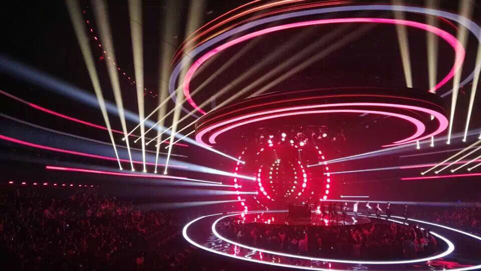 錄制當(dāng)晚,由浩洋電子搖頭染色燈GLW370Z、頂級(jí)切割燈V3000P、圖案燈V2500S、光束燈G10B和三合一電腦燈G10 HYBRID等實(shí)力產(chǎn)品共同打造的燈光舞臺(tái)秀,在歌會(huì)一開場就立刻引爆了現(xiàn)場觀眾的熱情!